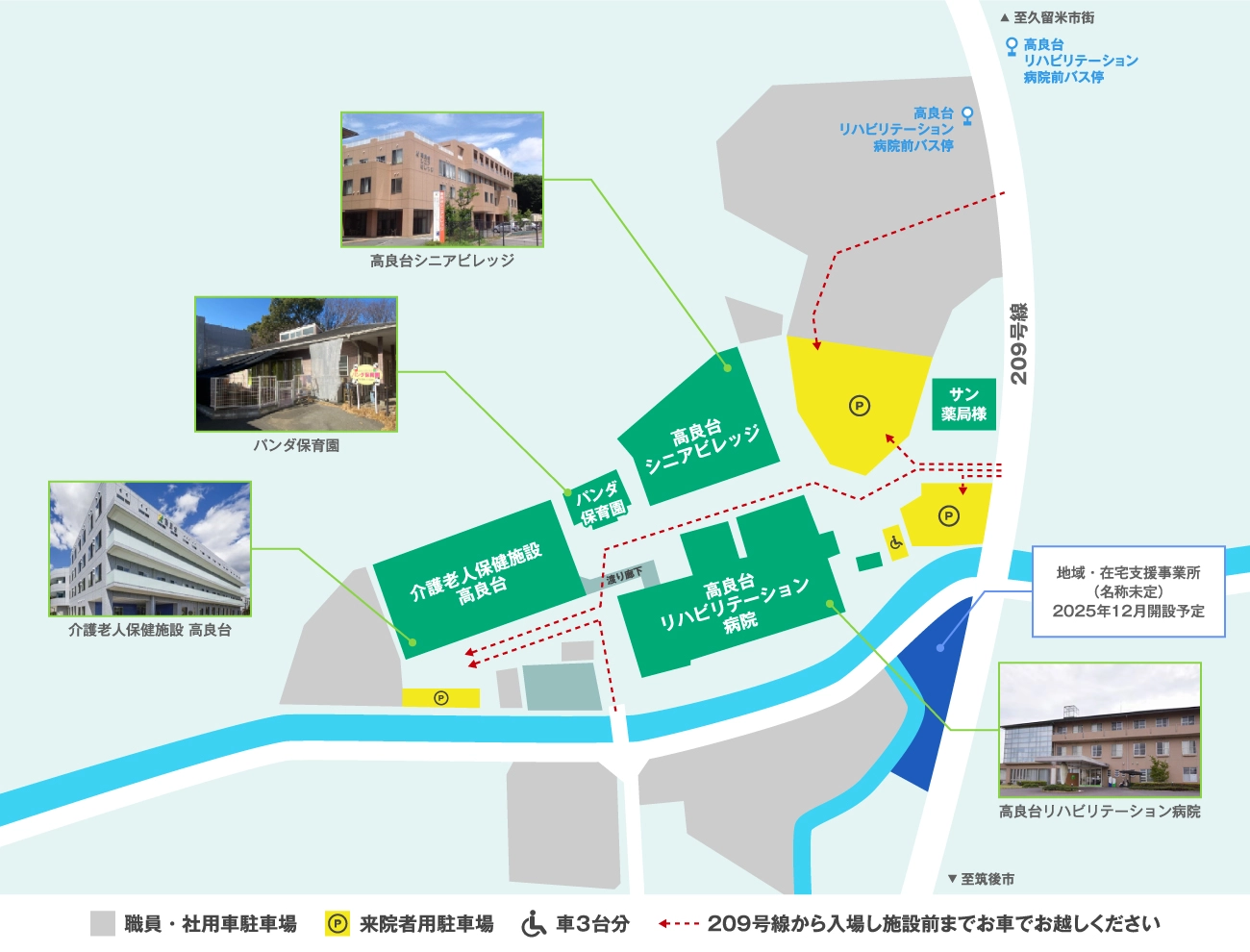 【バス】西鉄久留米駅より「船小屋」行き高良台リハビリテーション病院前下車 徒歩3分