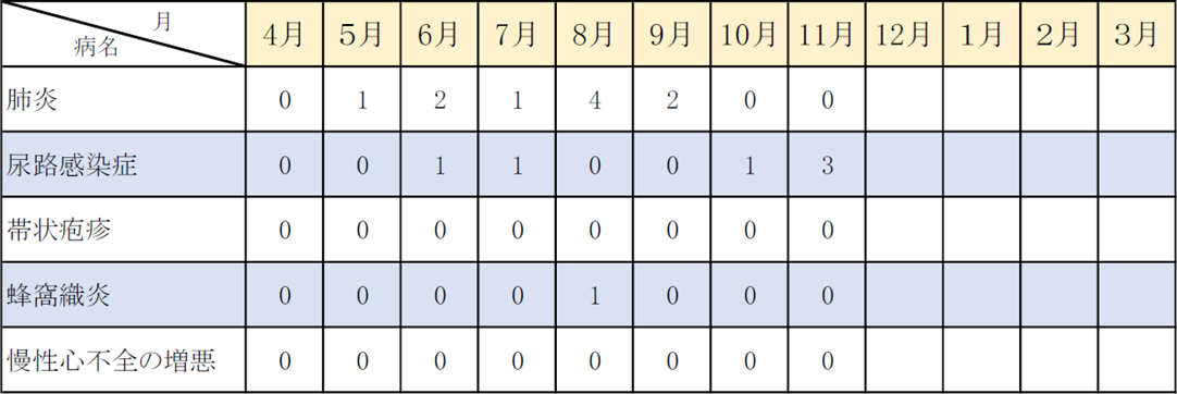 厚生労働大臣が定める基準に基づき、当施設における所定疾患施設療養費の算定状況を公表します。